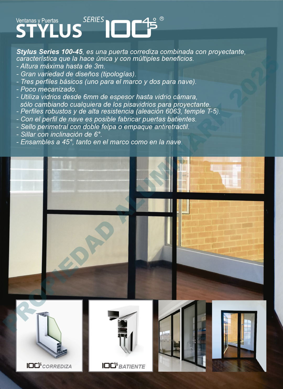 Stylus Series 100-45, es una puerta corrediza combinada con proyectante, característica que la hace única y con múltiples beneficios.