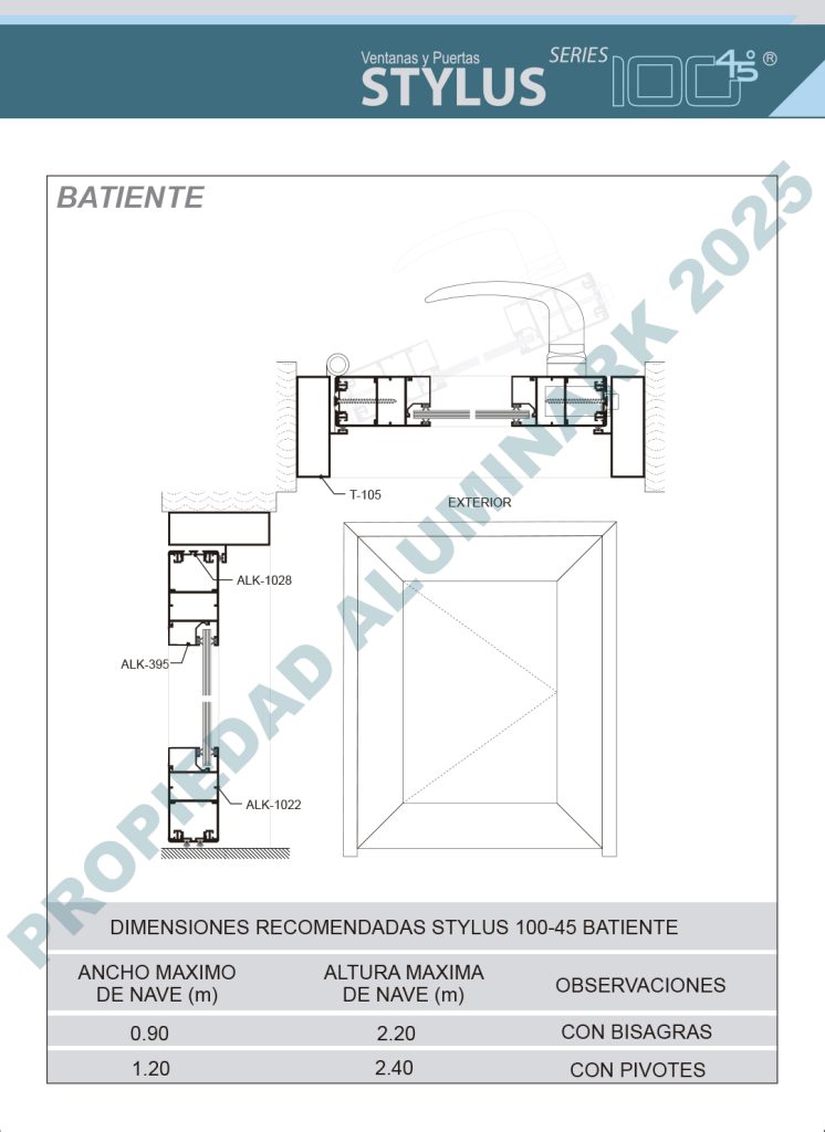 - Con el perfil de nave es posible fabricar puertas batientes.
