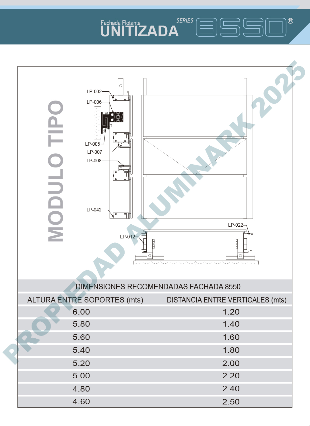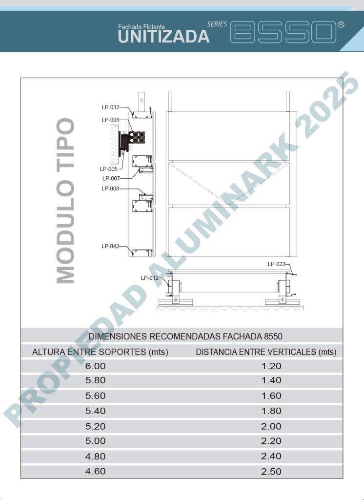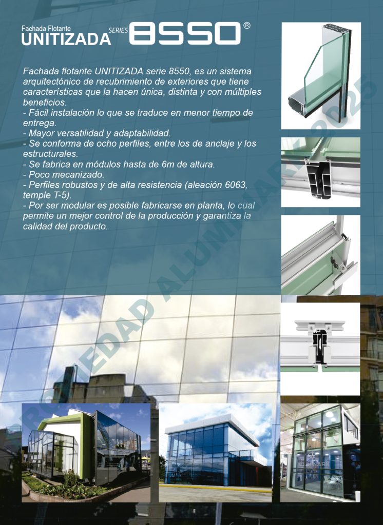 Fachada flotante UNITIZADA serie 8550, es un sistema arquitectónico de recubrimiento de exteriores que tiene características que la hacen única, distinta y con múltiples beneficios.