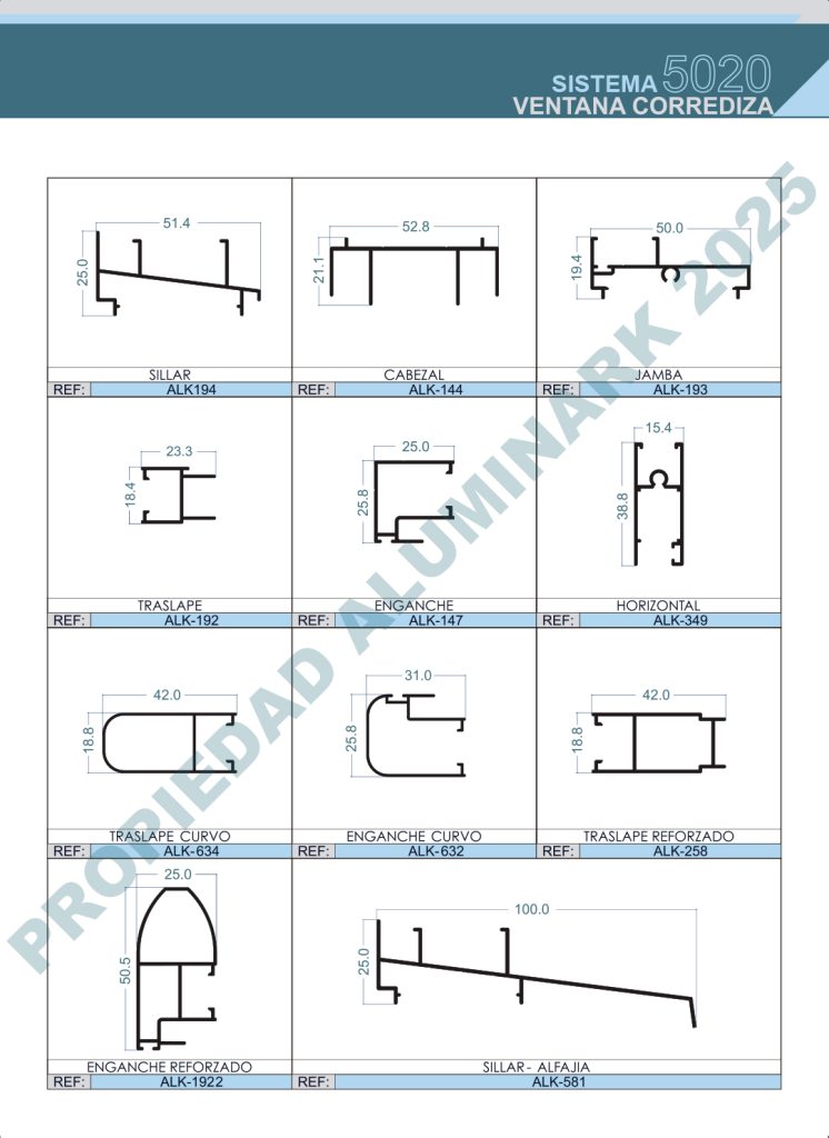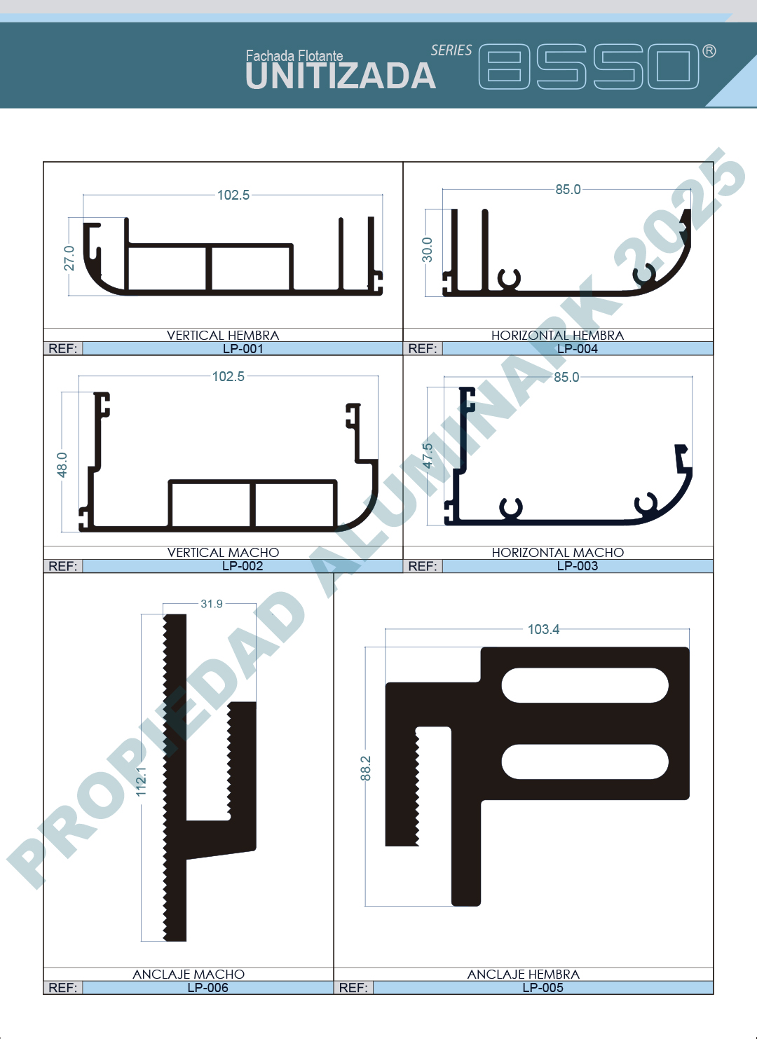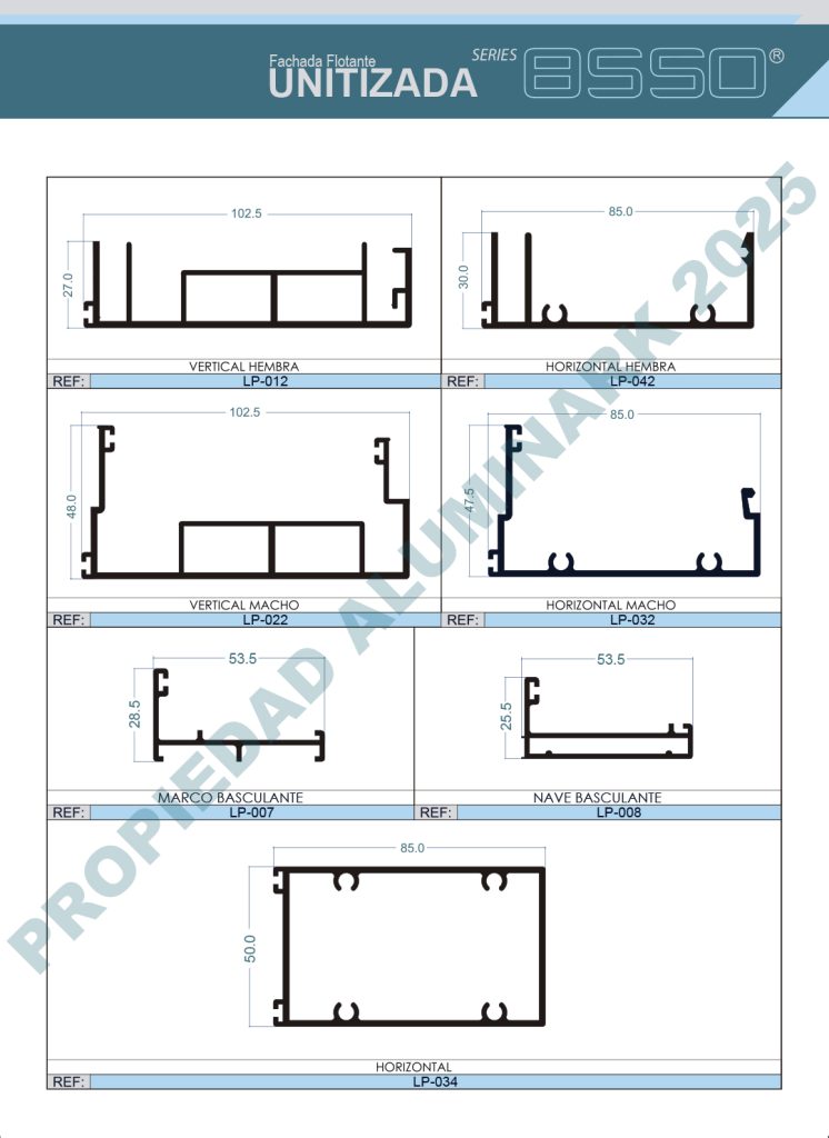 - Se conforma de ocho perfiles, entre los de anclaje y los estructurales.