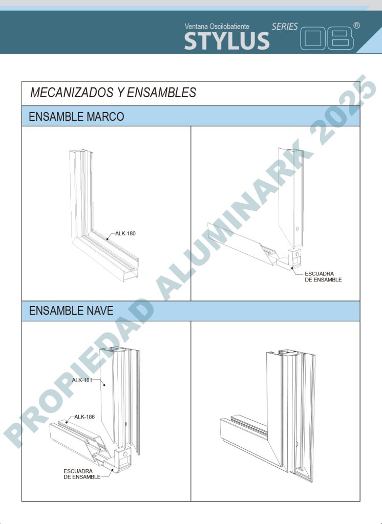 - Ensambles a 45°, tanto en el marco como en la nave.