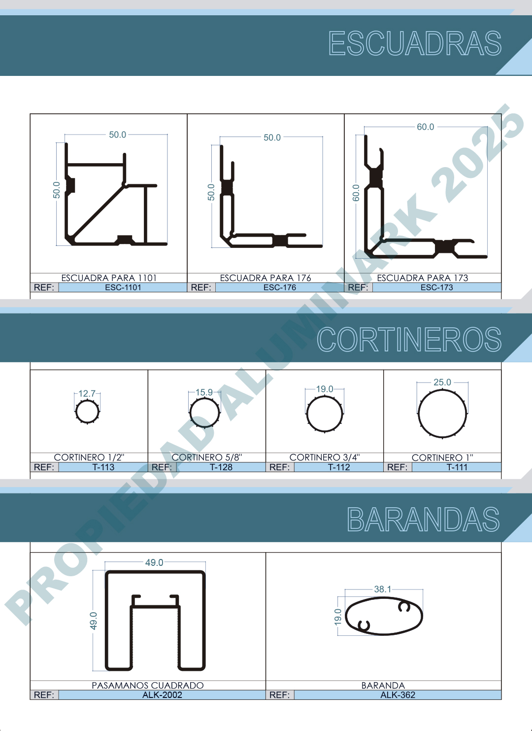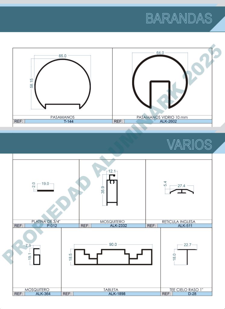- Perfiles robustos y de alta resistencia (aleación 6063, temple T-5).